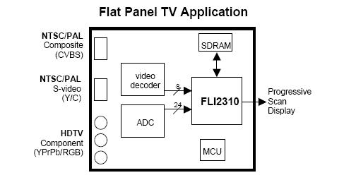 The FLI2310-LF is a Digital Video Format Converter for Flat Panel TV and digital projectors. The FLI2310-LF uses patented deinterlacing and post processing algorithms from Faroudja coupled with highly flexible scaling, a wide variety of aspect ratio conversions, and other special video enhancing features to produce the highest quality image. The applications of the FLI2310-LF include LCD TV, PDP TV, LCOS/DLP Projection TV, and Digital Projectors.